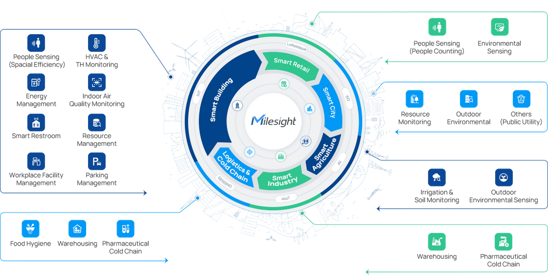 LoRaWAN ja teollinen IOT tuotteet Milesight tarjoaa monipotentiaalisia anturituotteita datan keräämiseen ja sen saatavuuteen erilaisissa sovelluksissa. Se soveltaa uusia teknologioita, kuten tekoälyä, 5G:tä ja loT:tä, erilaisiin käyttötilanteisiin. Milesight reagoi
