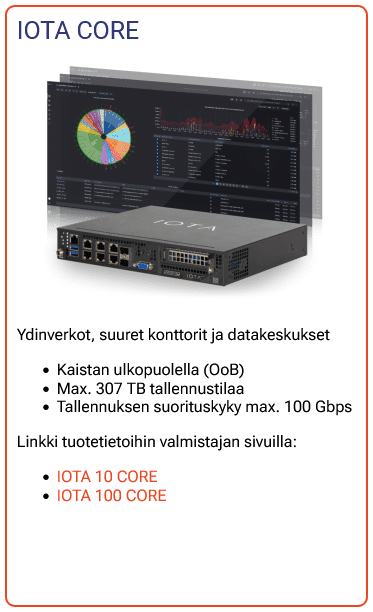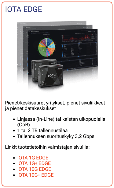 Profitap IOTA, täyden tarkkuuden omaava pakettien sieppausratkaisu, toimii lentotietojen tallentimien tavoin digitaalisille infrastruktuureille. Se tallentaa jokaisen paketin linjanopeudella, aikaleimoilla, eikä pakettien katoamista tapahdu. Tämä mahdollistaa sekä turvallisuus- että verkkotoimintojen tiimien: